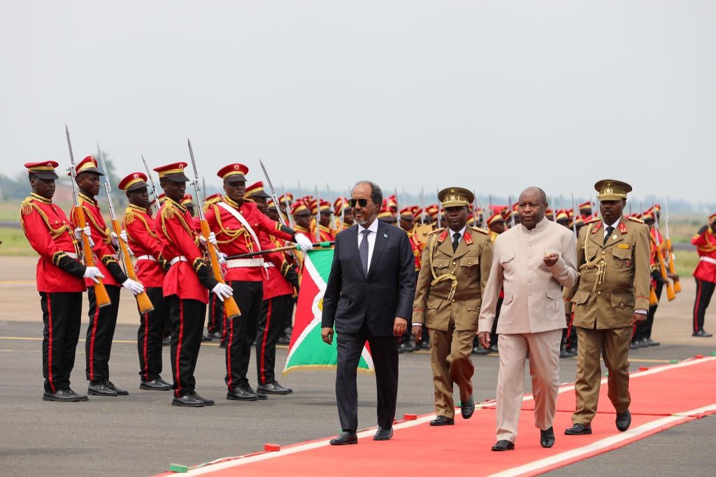 The President of the Federal Republic of Somalia, Mr. Hassan Sheikh Mohamud, today arrived in Bujumbura, the capital of Burundi, where he had a meeting with the President of the Republic of Burundi, Mr. Evariste Ndayishimiye.